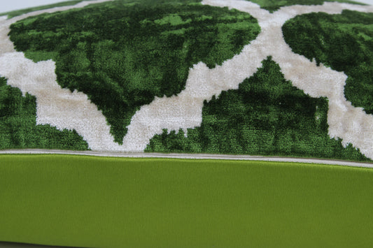 Silk Ikat Velvet Deep Green and White Oriental Motif Cushion