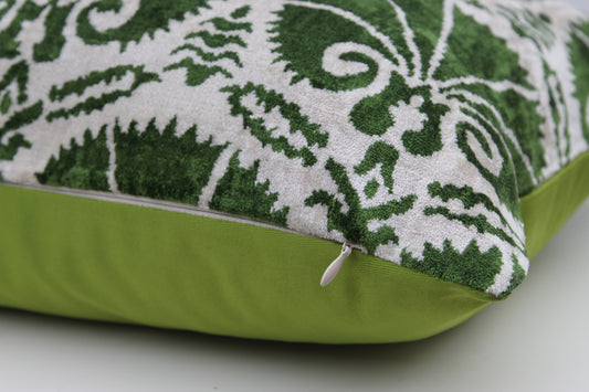 Silk Ikat Velvet Green and Orange Chintamani Cushion
