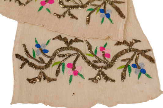 Ottoman Antique Turkish Linen textile embroidered with floral patterns in silk and Gold Metallic thread (Late 19th Century)