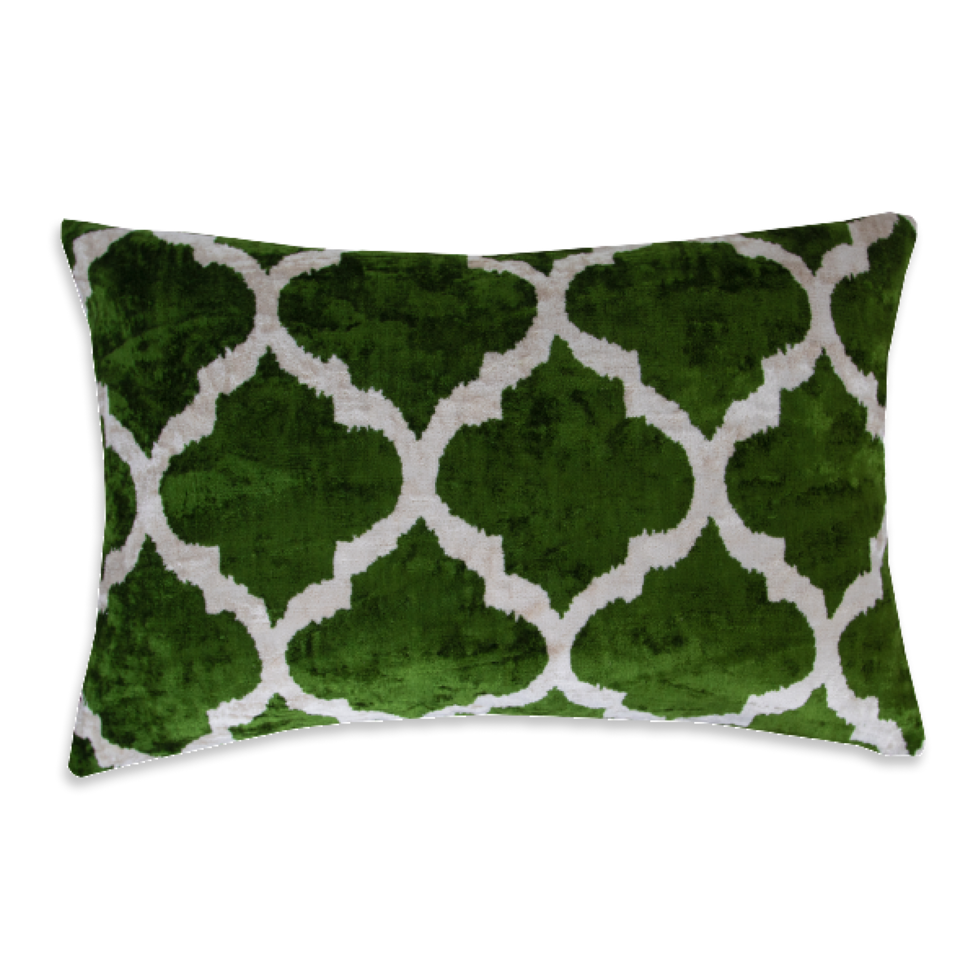 Silk Ikat Velvet Deep Green and White Oriental Motif Cushion