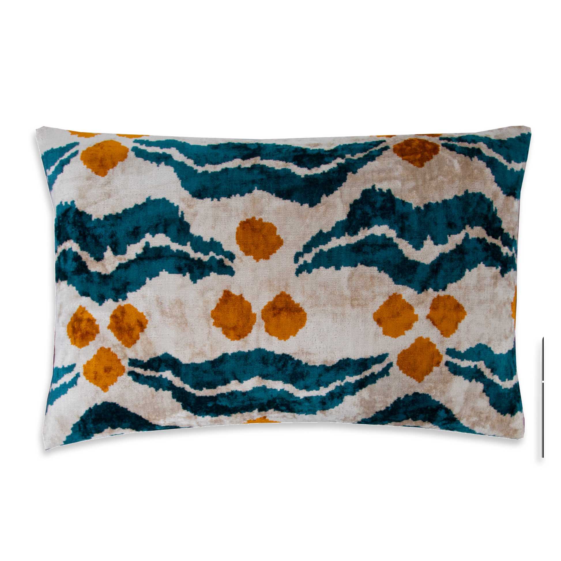 Silk Ikat Velvet Green and Orange Chintamani Cushion