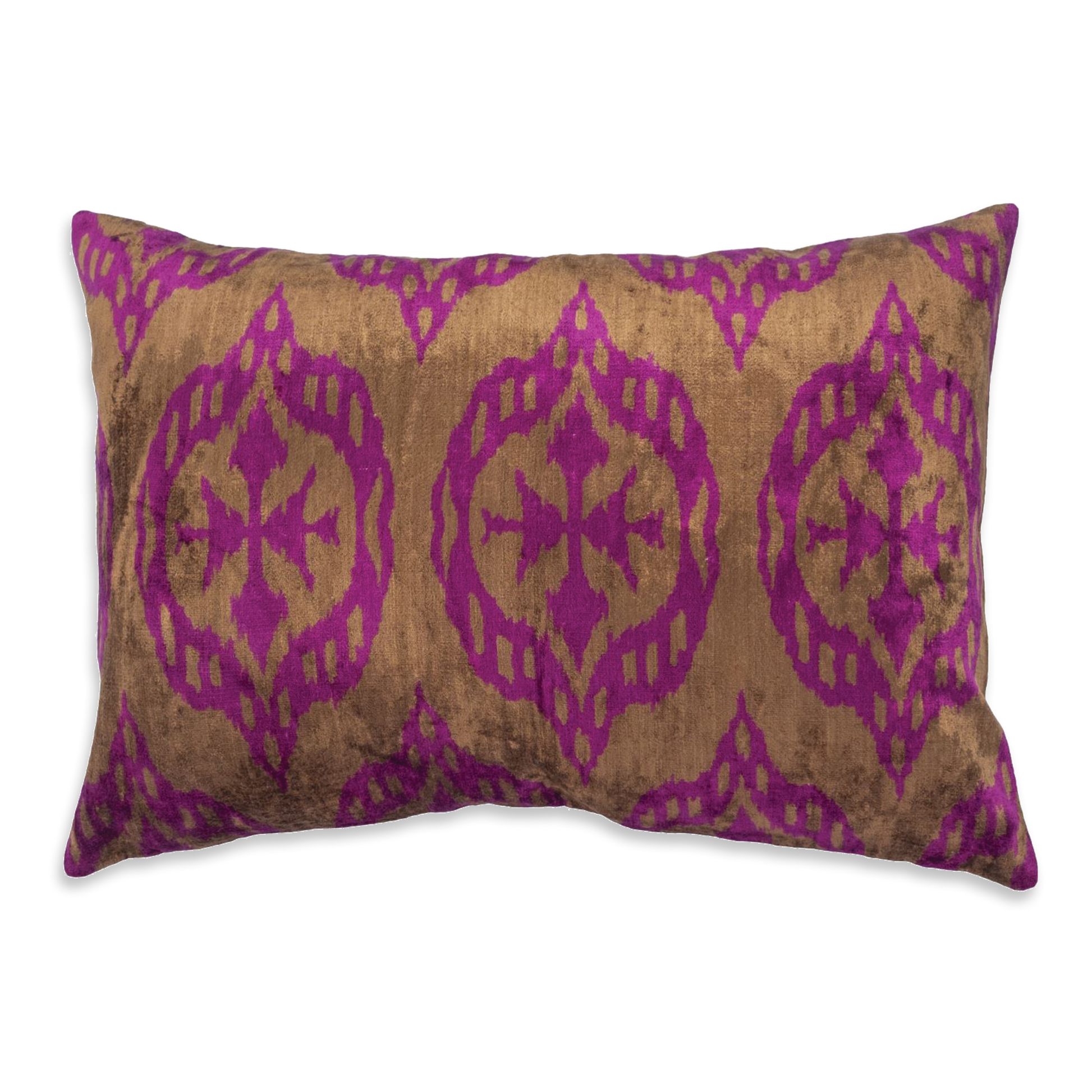 Silk Ikat Velvet Fuchsia and Brown Cushion