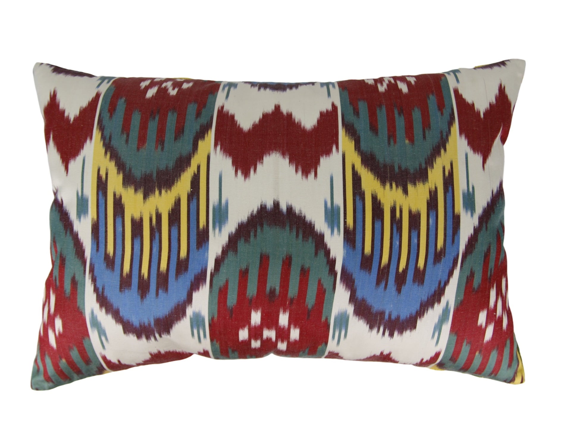 Silk hand embroidered on silk-cotton fabric, silk ikat back