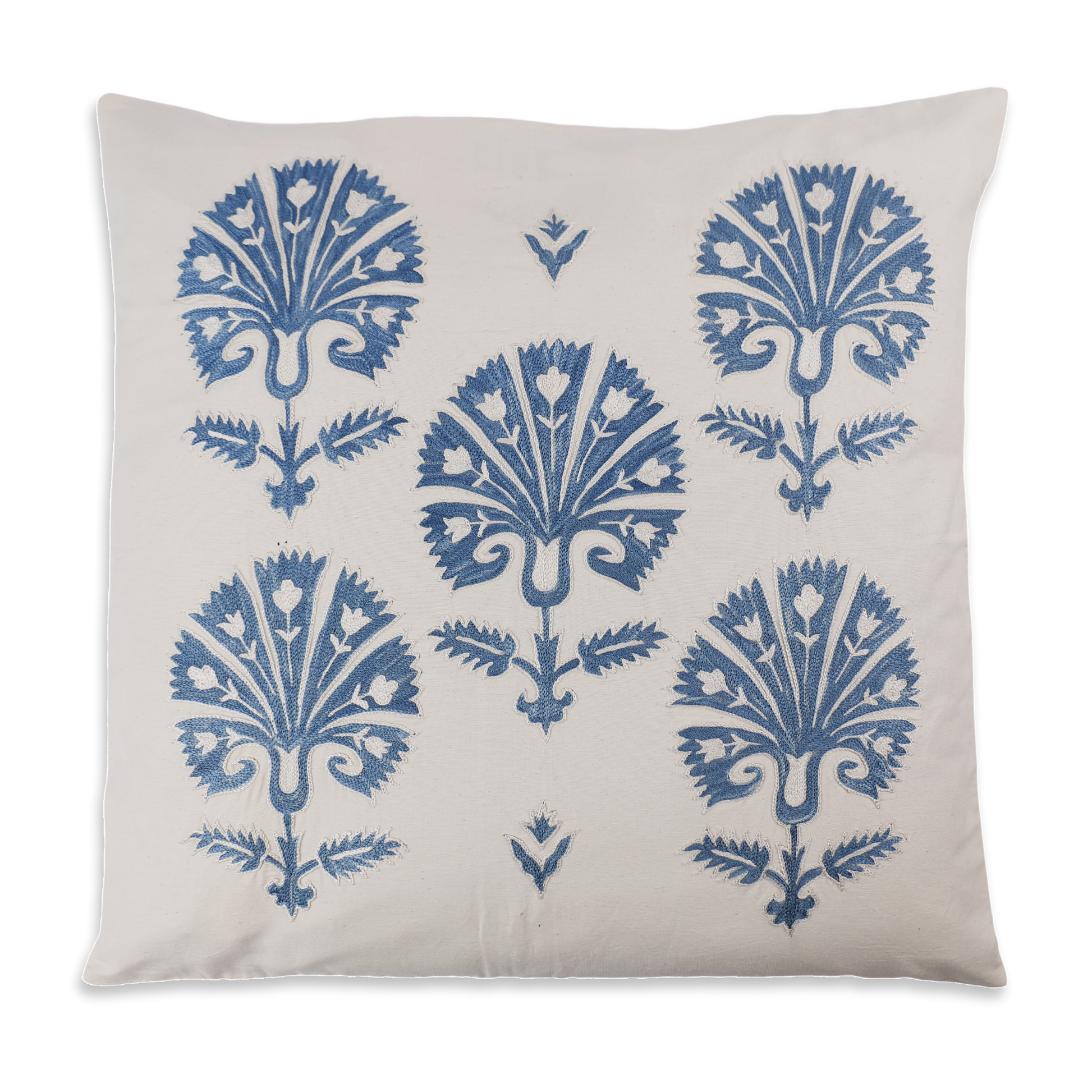 Silk Embroidered Ottoman Blue Carnations Cushion