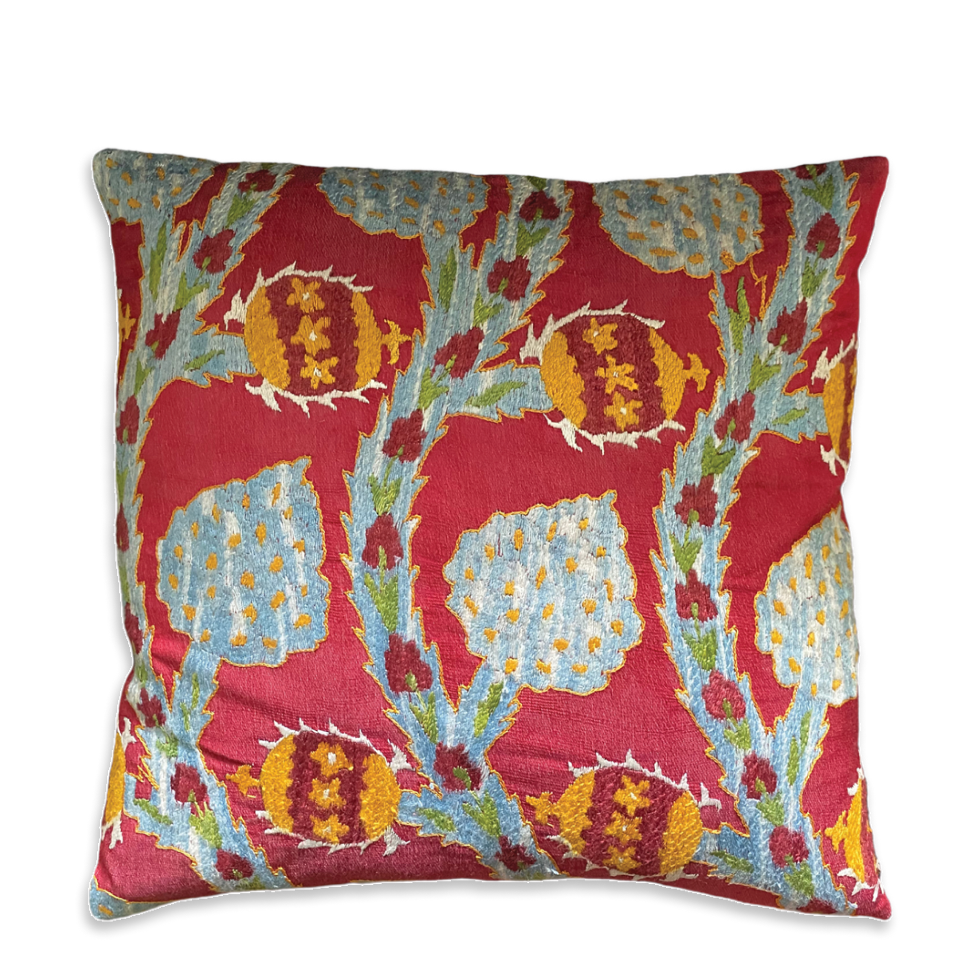 Silk Embroidered Suzani Ottoman Antique Pomegranates Cushion