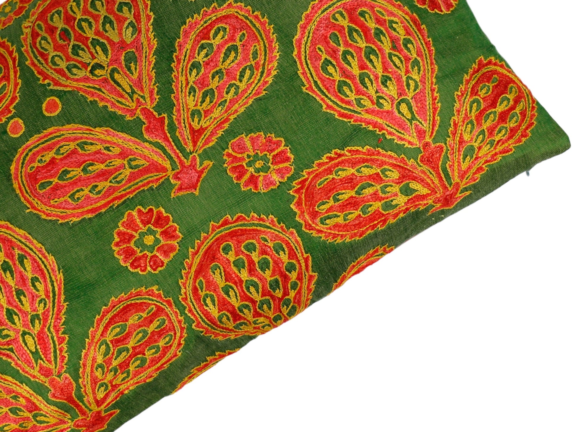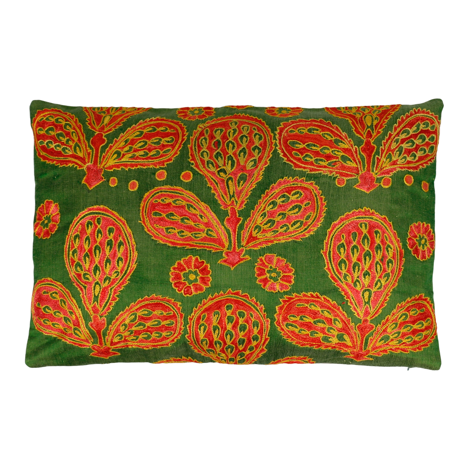 Silk Embroidered Suzani Green and Orange Ottoman Antique Motif Cushion