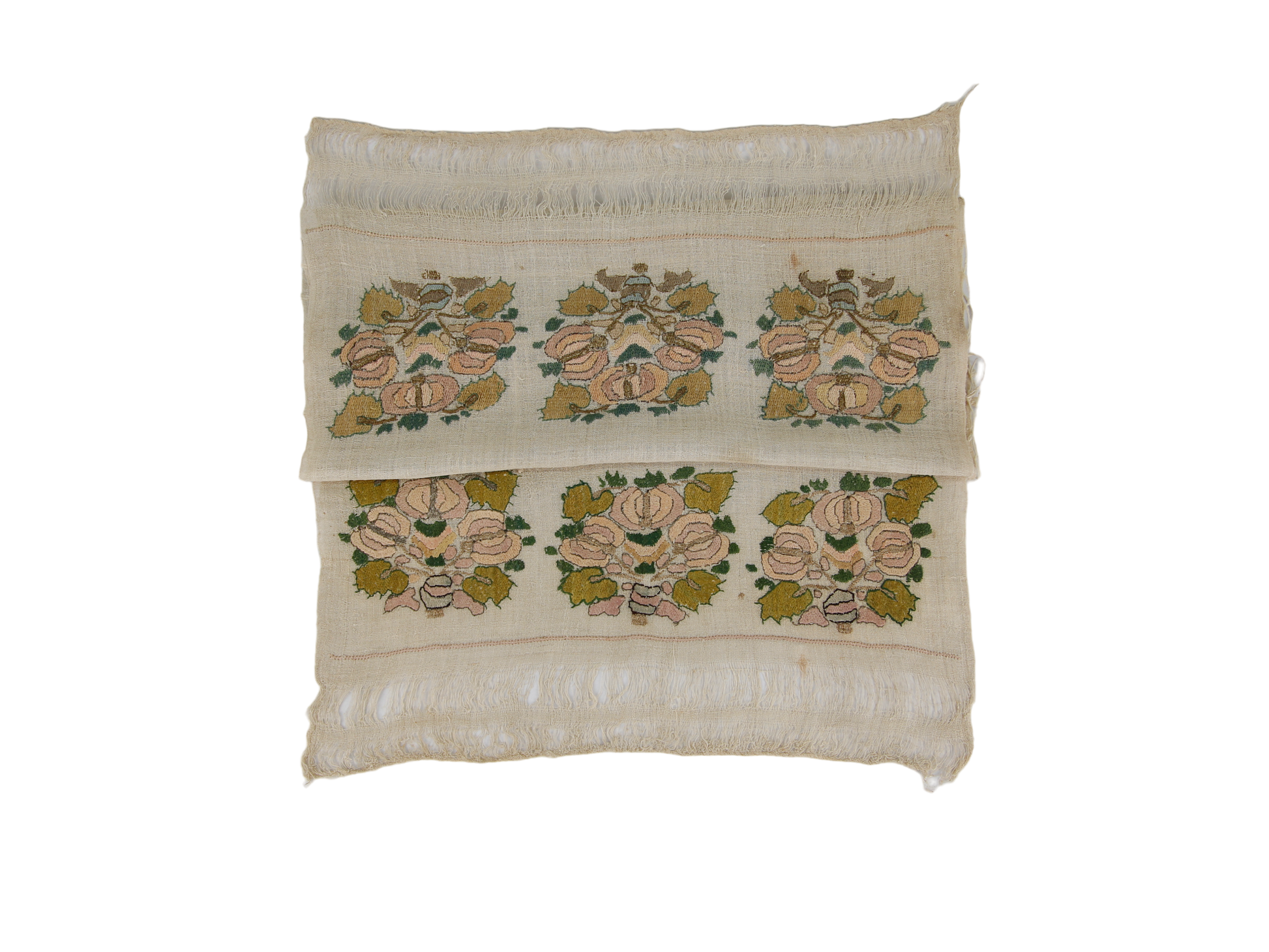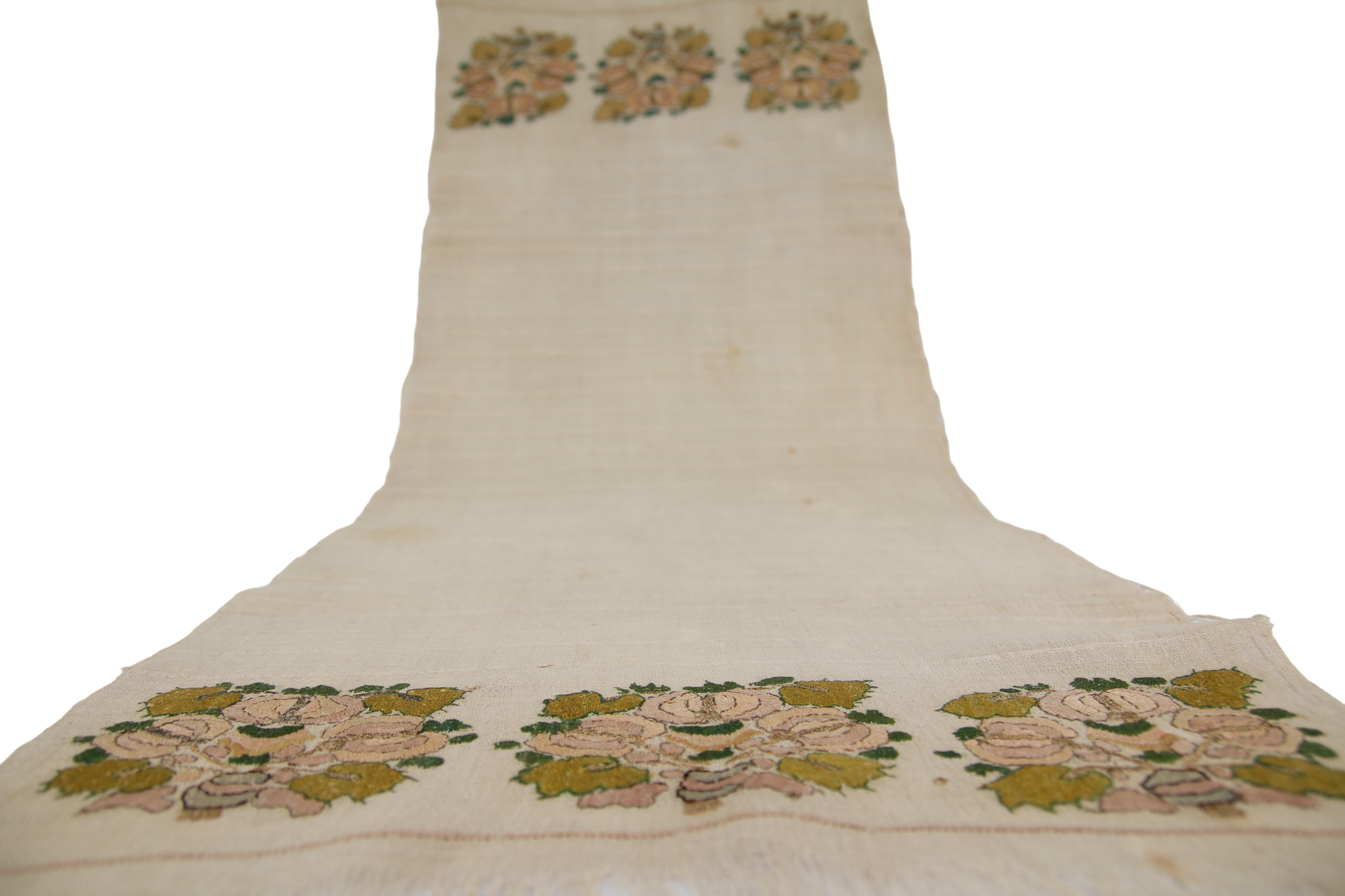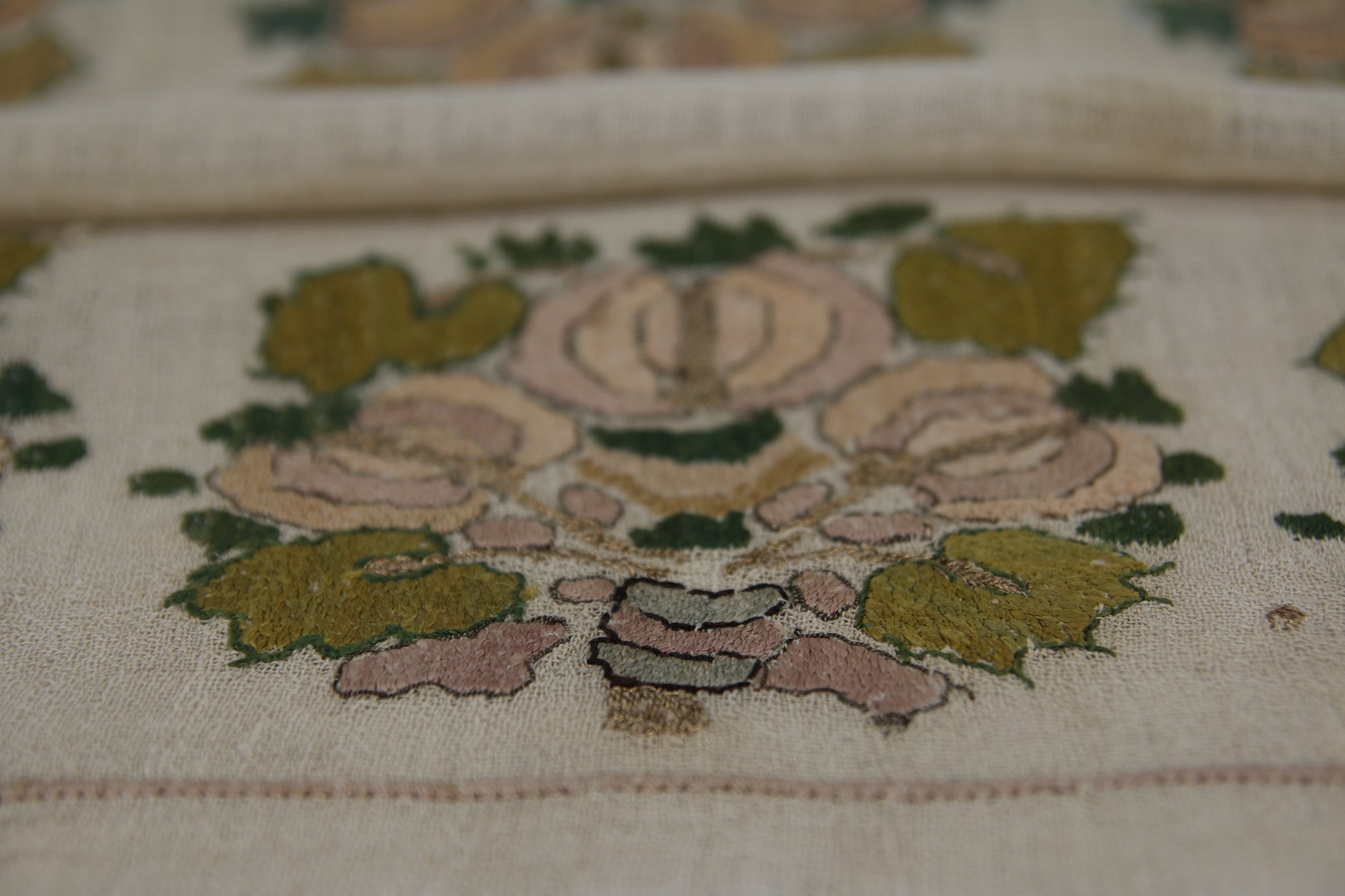 Ottoman Antique Turkish Linen textile embroidered with floral patterns in silk and thread (Late 19th Century)