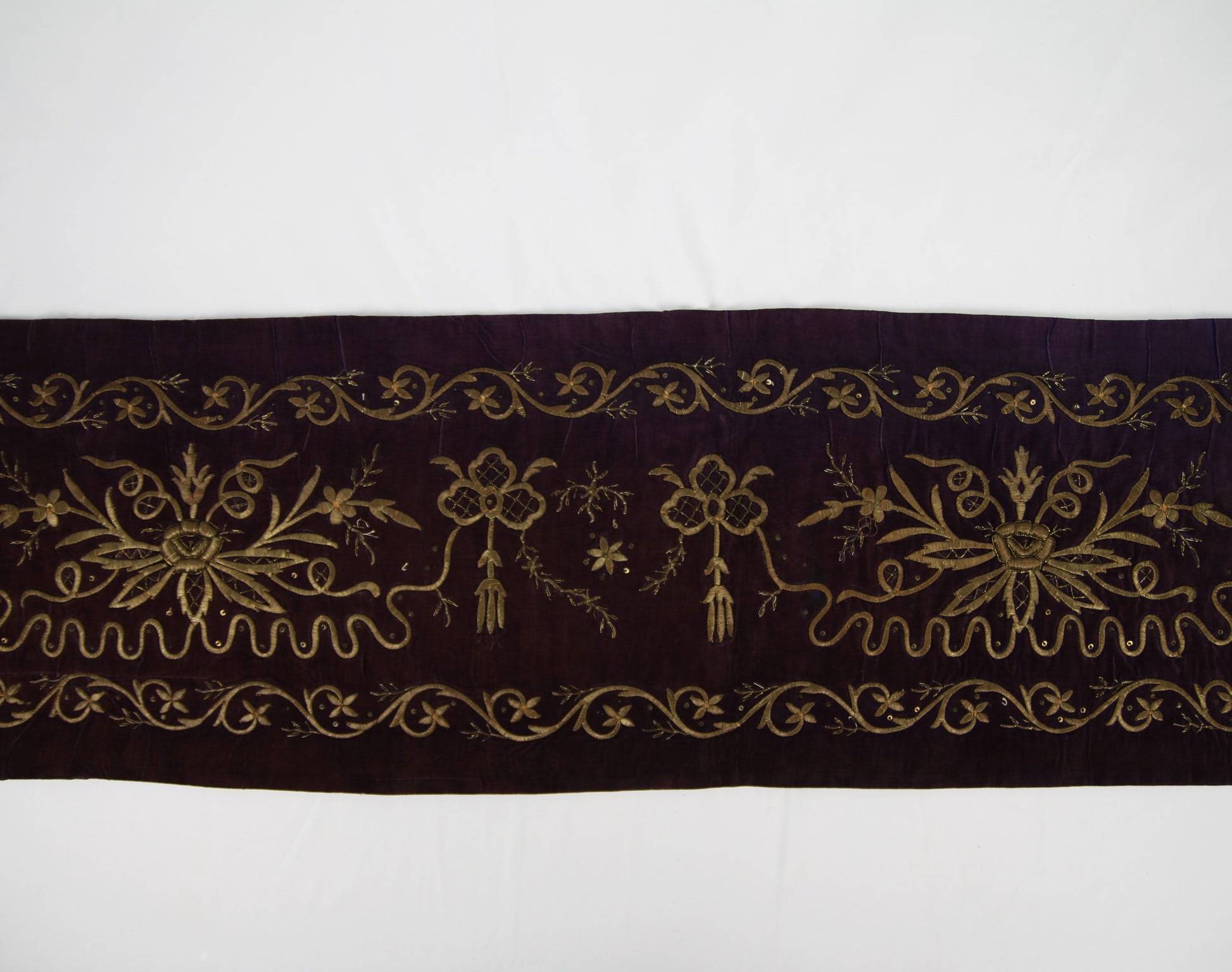 Ottoman metallic embroidered runner is luxurious and intricate product that feature detailed embroidery in metallic threads. This unique runner is traditionally handcrafted in Turkey and are often used for home decor items such as table runners, pillow covers, and wall hangings. The production of Ottoman metallic embroidered textiles requires a high level of skill and craftsmanship, making them a sought-after and valued item in the world of textiles.