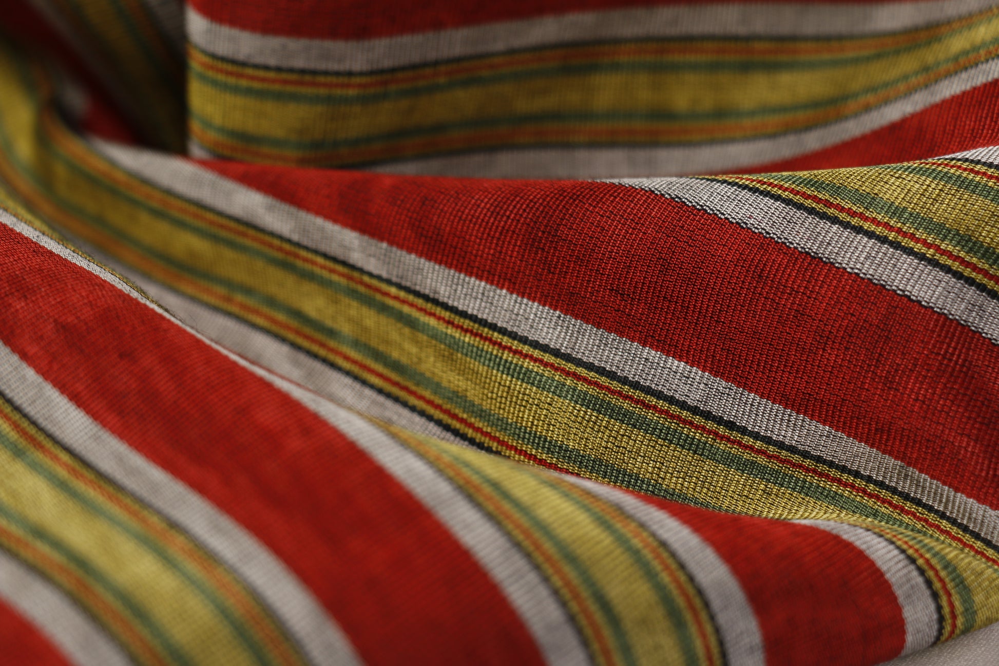 Traditionally handwoven red and yellow stripes kutnu fabric with high silk ratio is resilient and has a soft, luxurious feel. It works wonders for upholstery projects, bedding, wall panels and more. This fabric with bright stripes, designed exclusively for Ottoman Touch is inspired by the ancient fabrics of the Ottoman era.