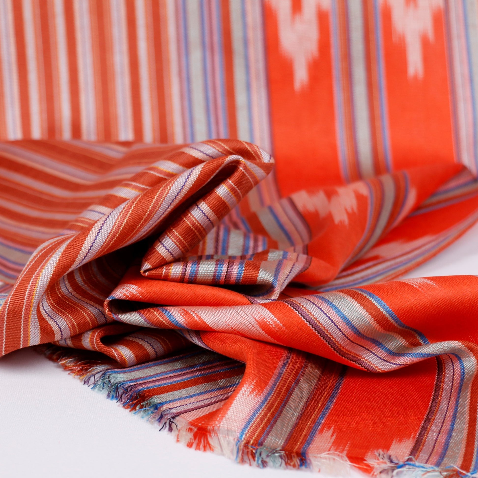Traditionally handwoven orange and white stripe kutnu fabric with high silk ratio is resilient and has a soft, luxurious feel. It works wonders for upholstery projects, bedding, wall panels and more. This fabric with bright stripes, designed exclusively for Ottoman Touch is inspired by the ancient fabrics of the Ottoman era.