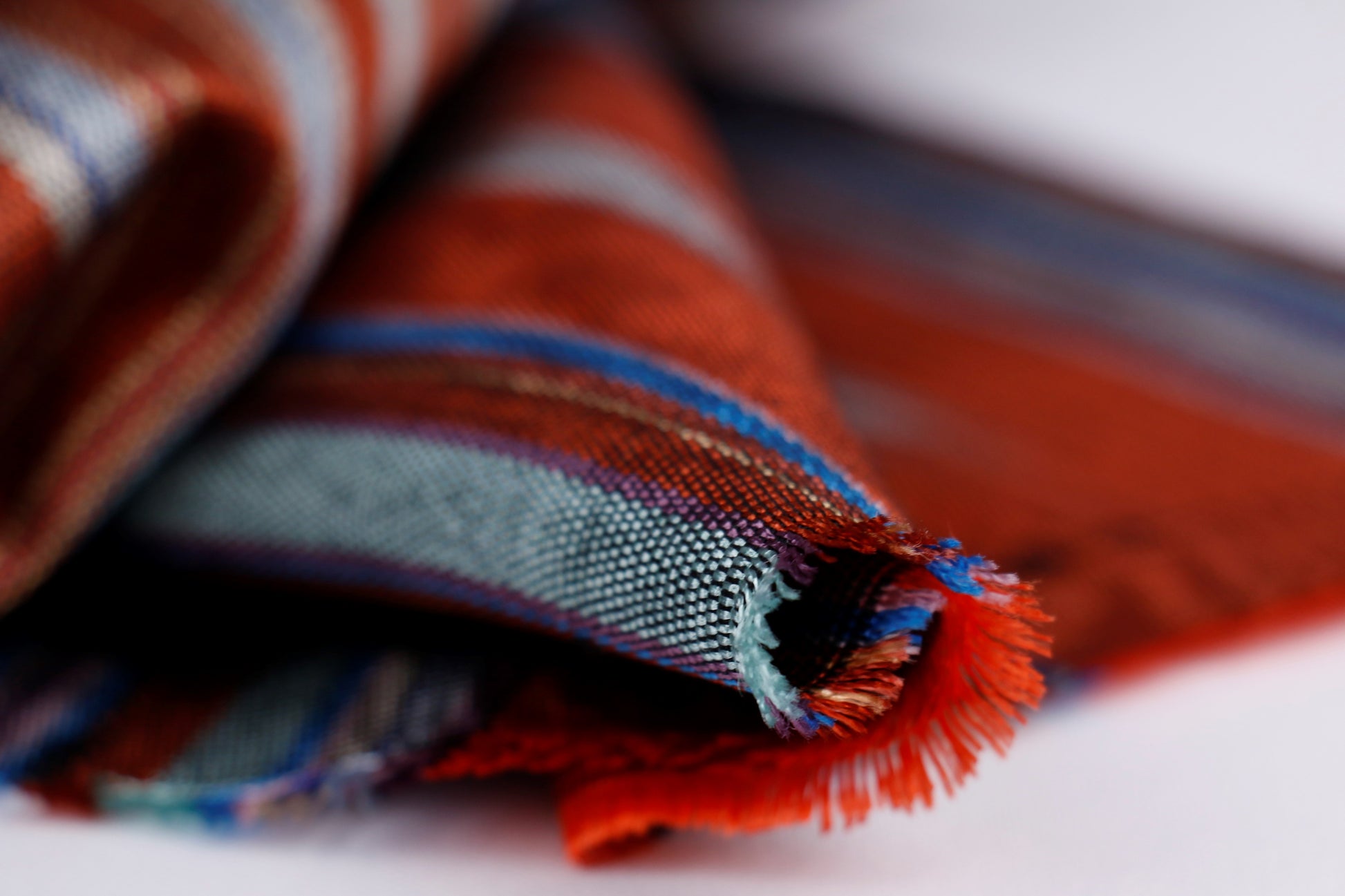 Traditionally handwoven Orange ikat kutnu fabric with high silk ratio is resilient and has a soft, luxurious feel. It works wonders for upholstery projects, bedding, wall panels and more. This orange fabric with bright stripes, designed exclusively for Ottoman Touch is inspired by the ancient fabrics of the Ottoman era.