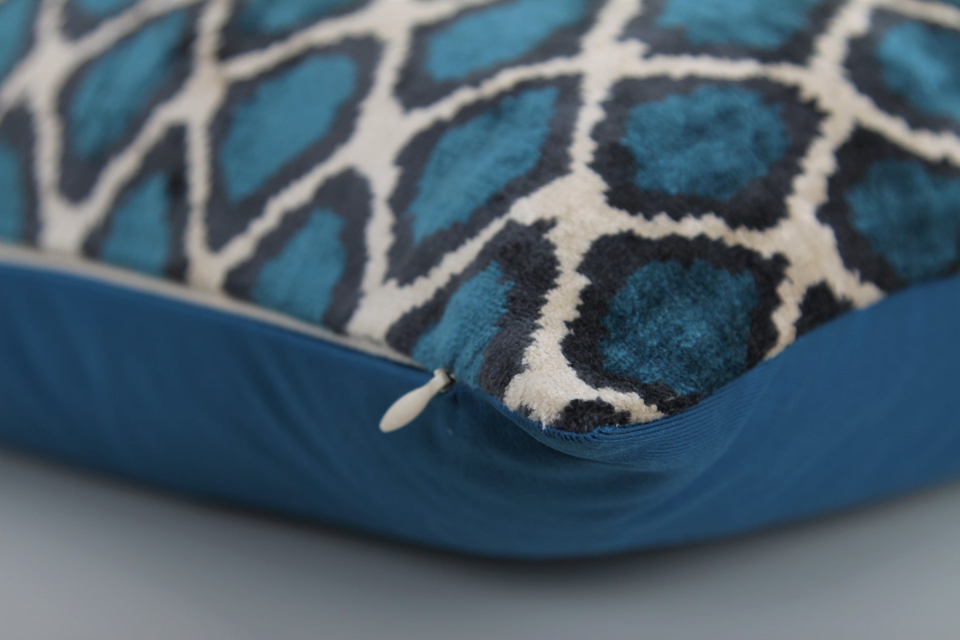 Silk Ikat Velvet Blue and White Harem Motif Cushion