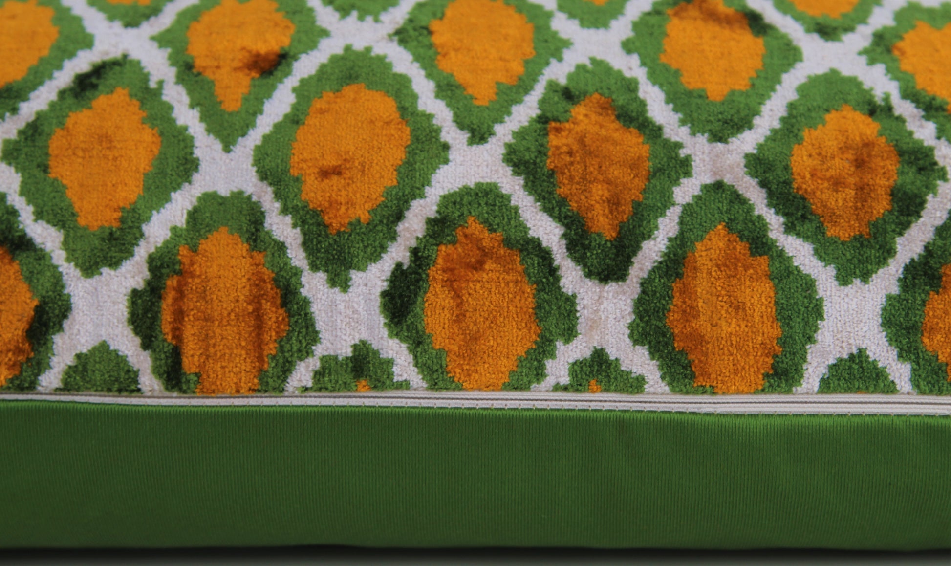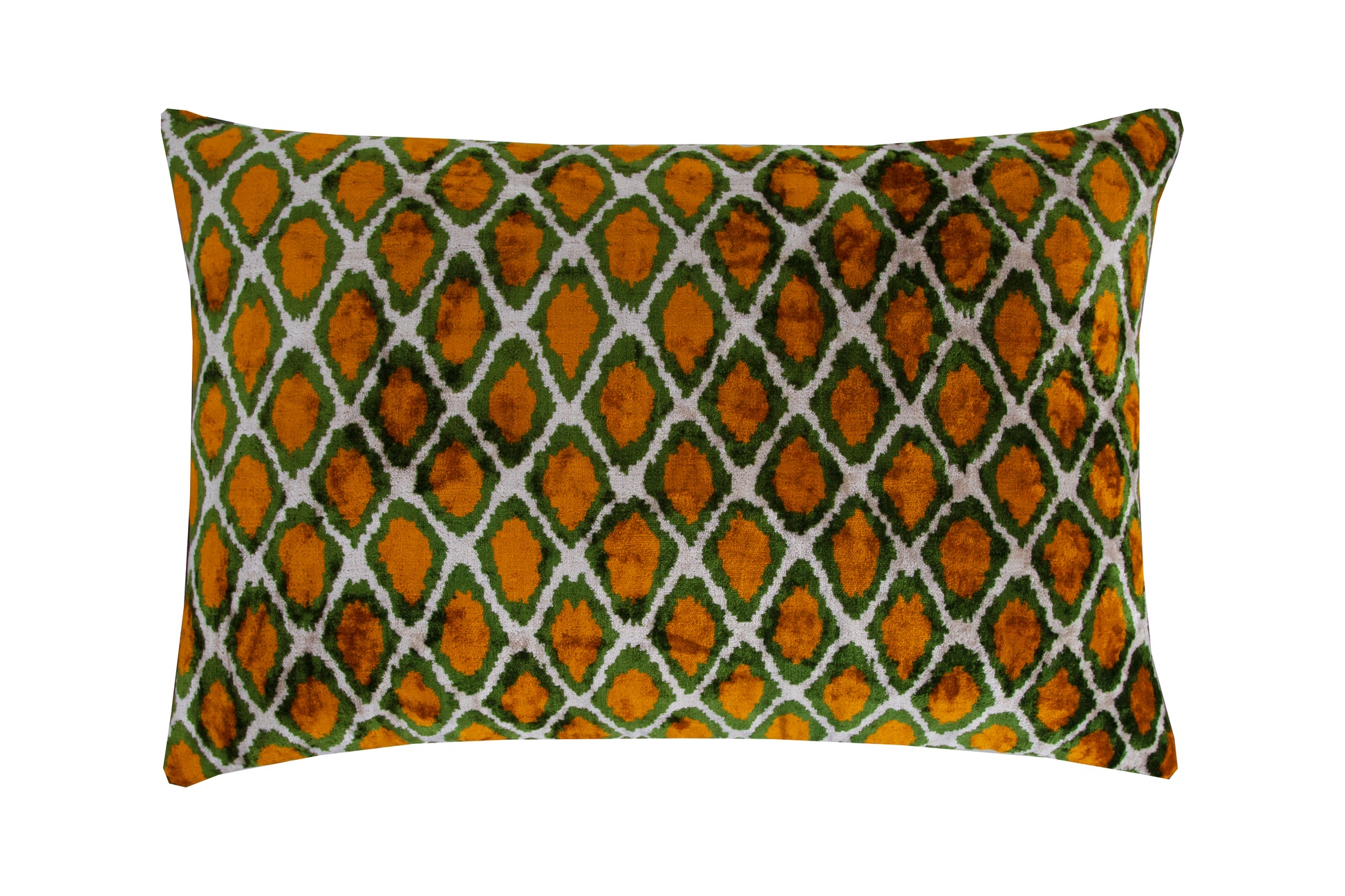 Silk Ikat Velvet Yellow and Green Harem Motif Cushion
