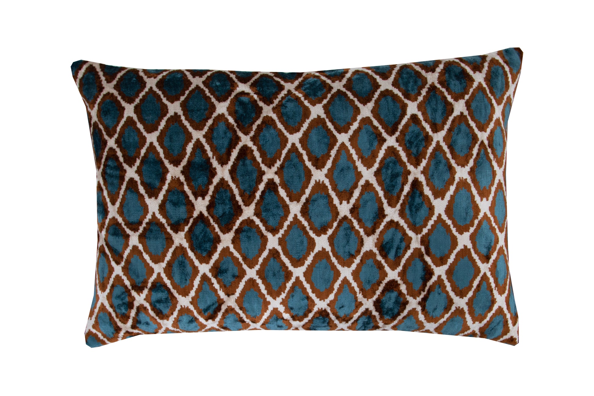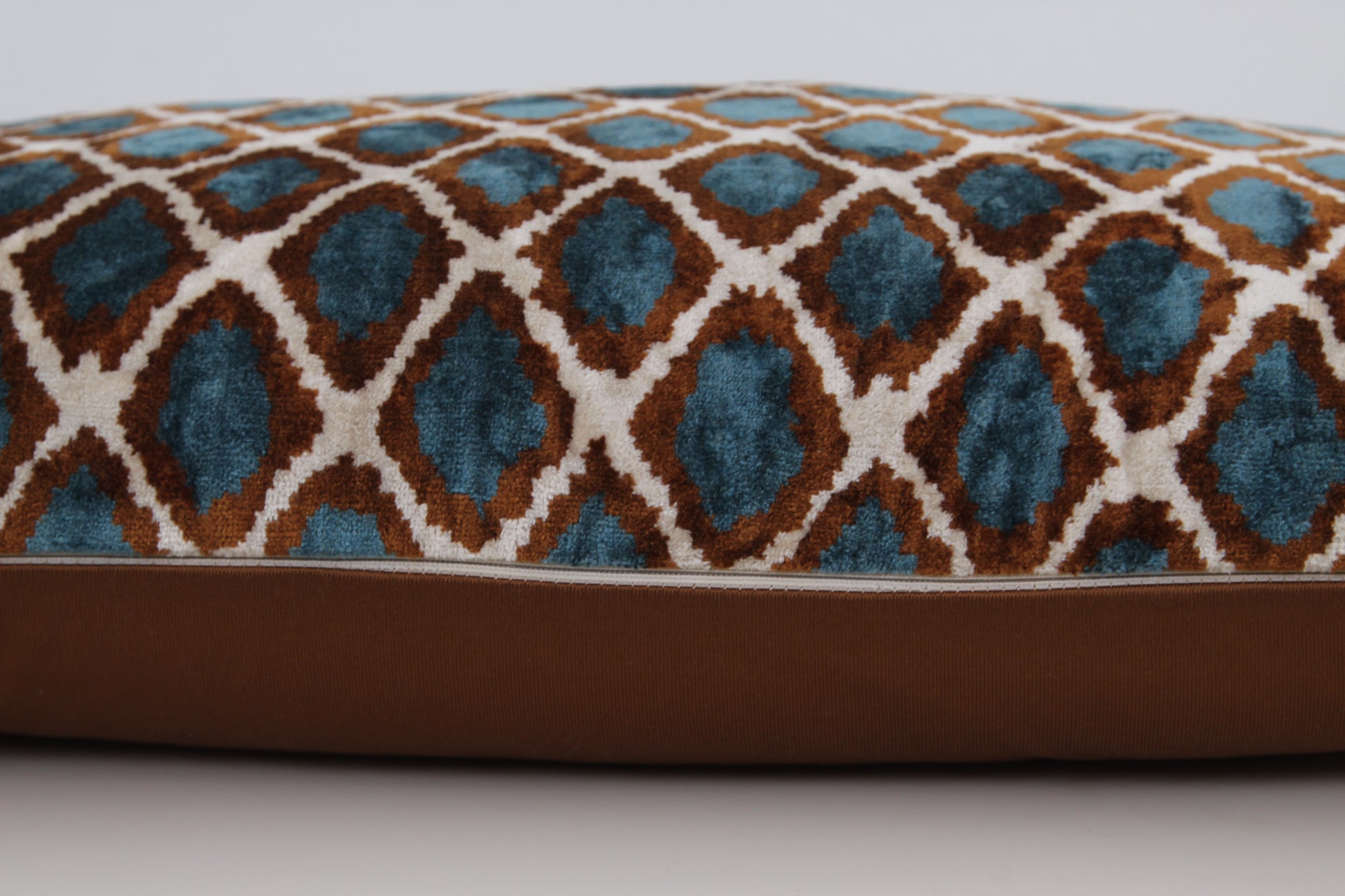 Silk Ikat Velvet Blue and Brown Harem Motif Cushion